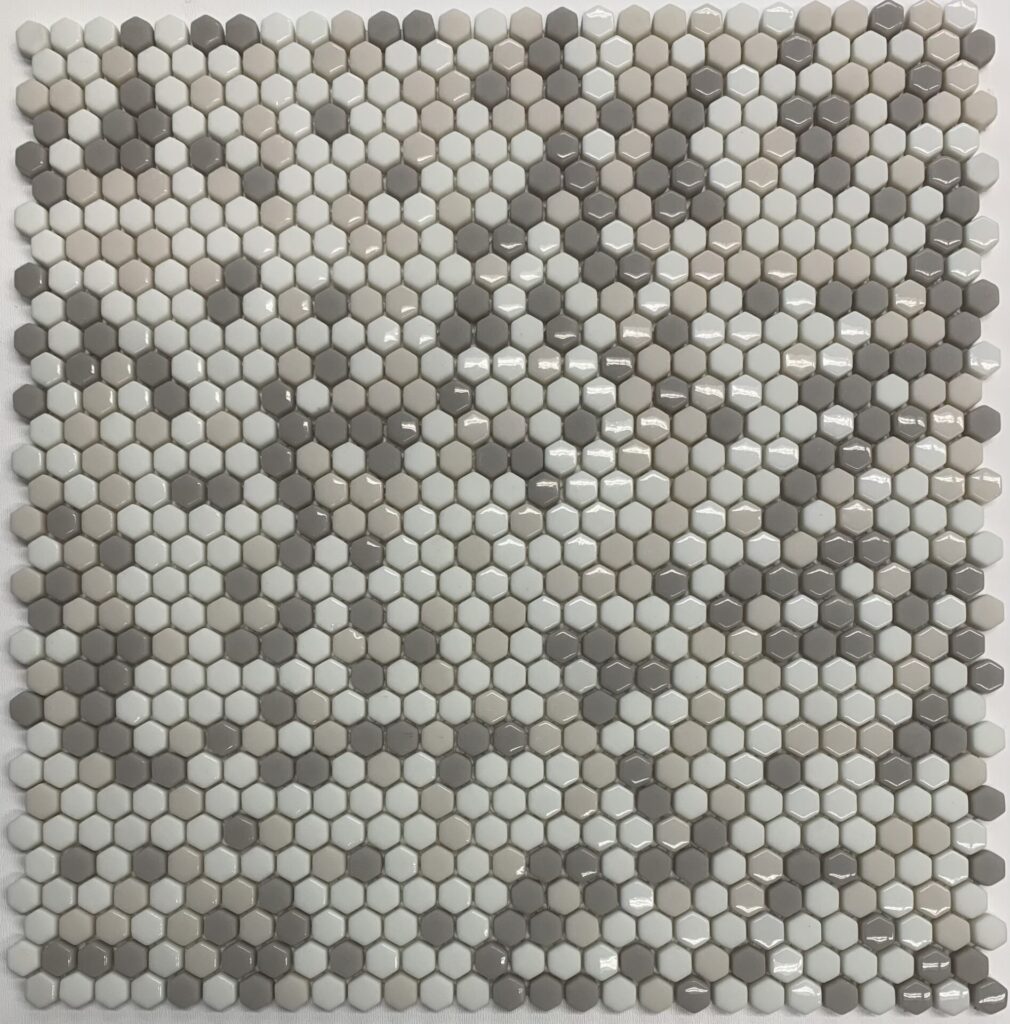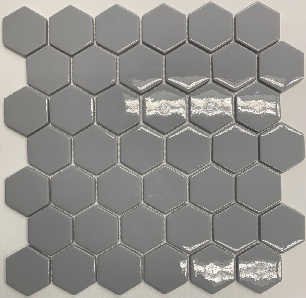 SERIES: RG 2″ Hexagon PRODUCT INFO: 1 SF/SHEET THICKNESS: 1/4″ BOX QUANTITY: 1 BOX = 11 SHEETS WALL/FLOOR: Floor and wall tile
