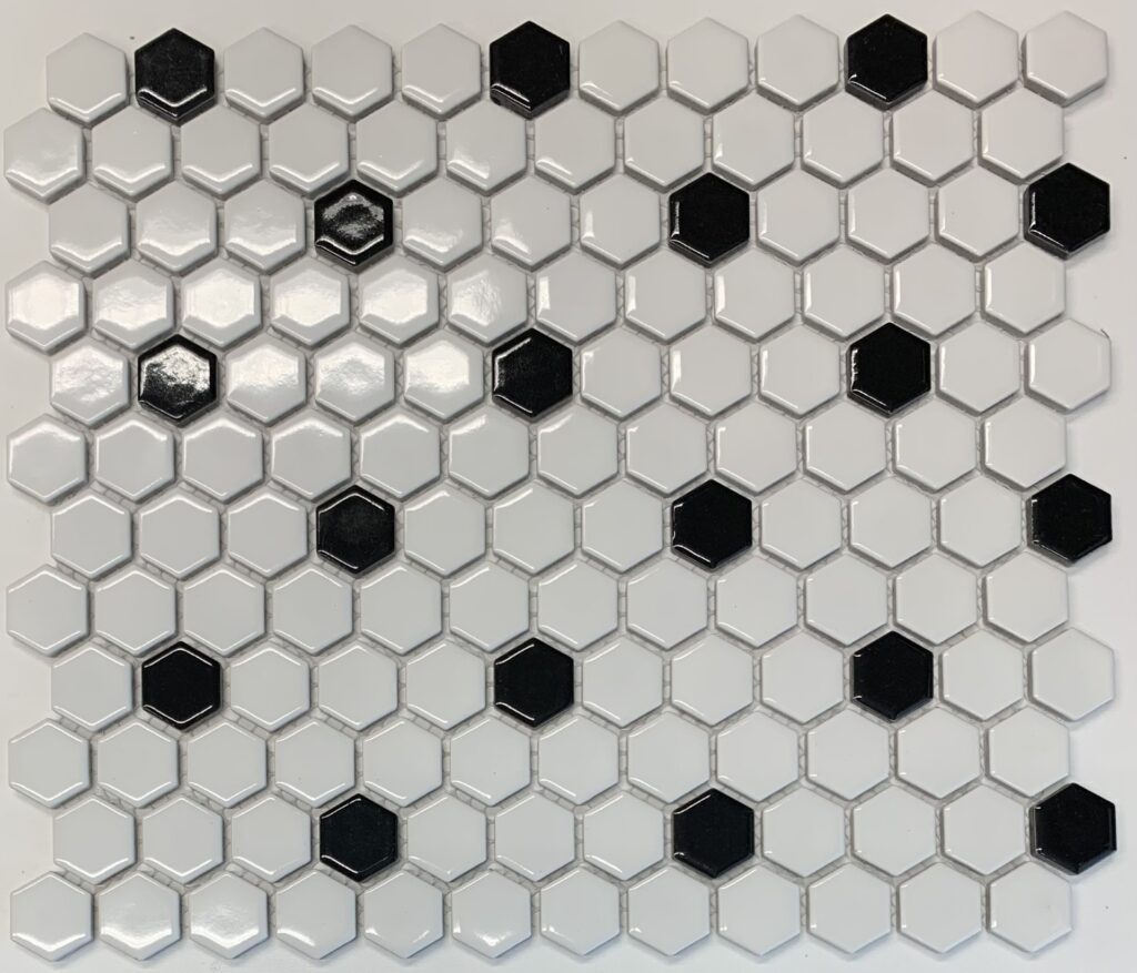 Porcelain HP 1″ Hexagon Mix White/ Black Glossy